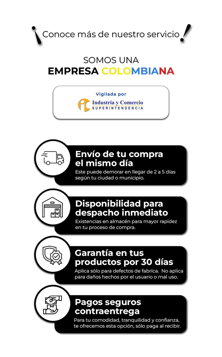 Este producto cuenta con 20 días de garantía por defectos de fábrica. Si el producto llega roto, incompleto o con algún error en el pedido, podrás reportarlo hasta 8 días después de recibirlo para realizar el cambio correspondiente.